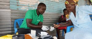 Health worker from Healthy Entrepreneur testing end customer for malaria